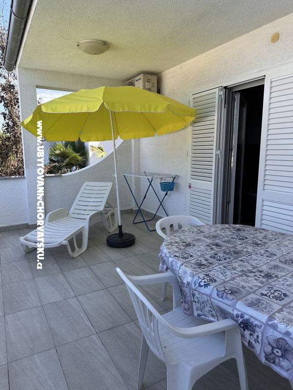 The apartment has a bedroom with double bed and one more bed, living room with 2 beds, SAT+TV, internet, fully equipped kitchen, bathroom and terrace. In the backyard is grill and a table for 6 people. Each apartment has one parking space. Apartments have bedding and towels for all people. The price includes all costs (taxes, electricity, water, final cleaning ...). For the reservation you have to pay a deposit and the rest on arrival. For more information check the web (link above in contacts)